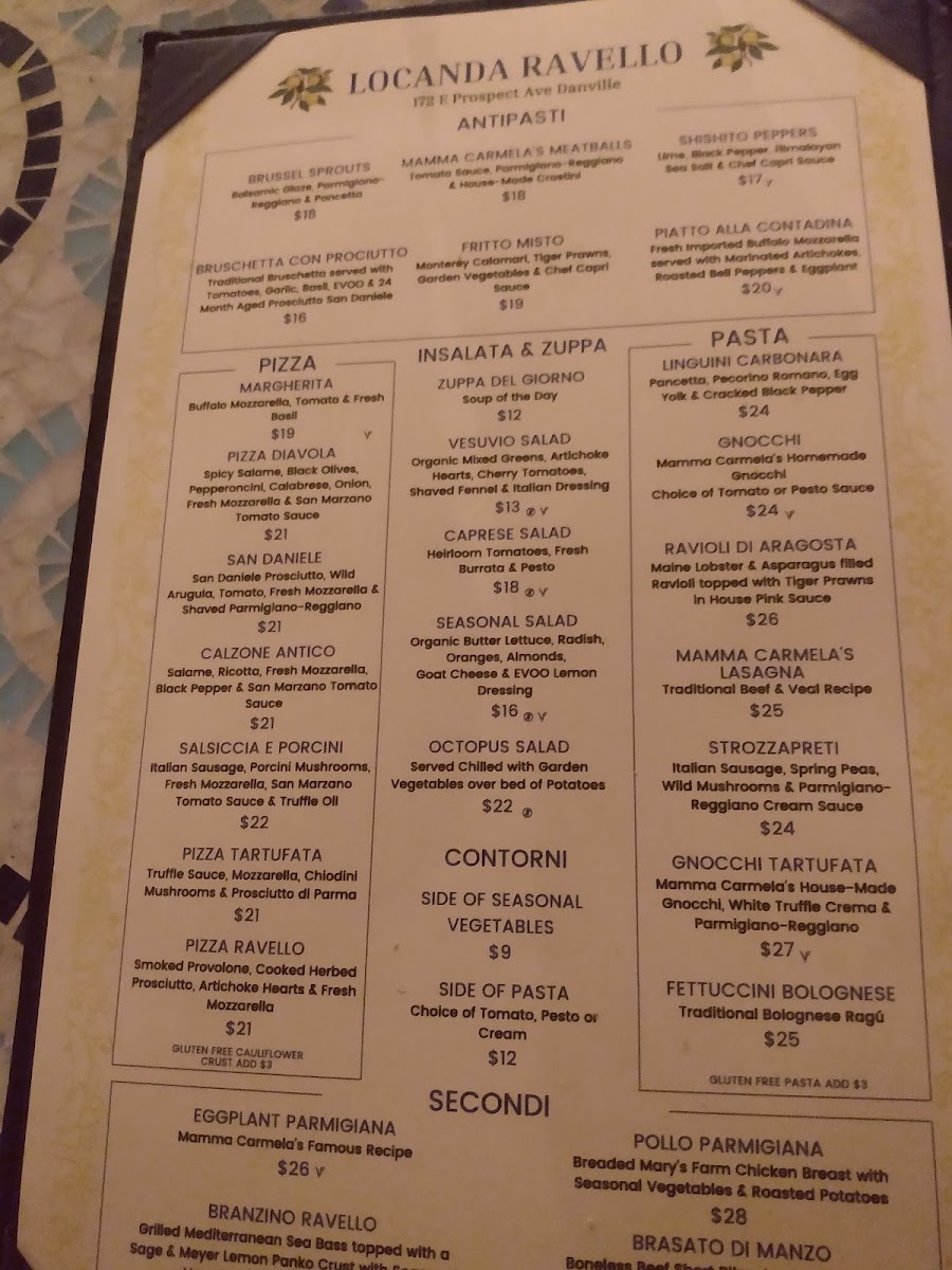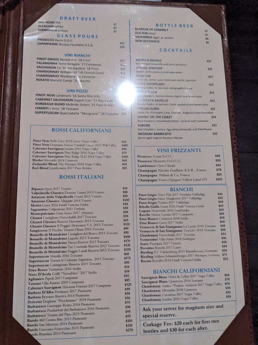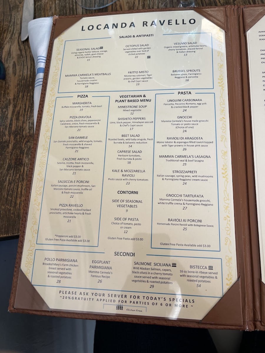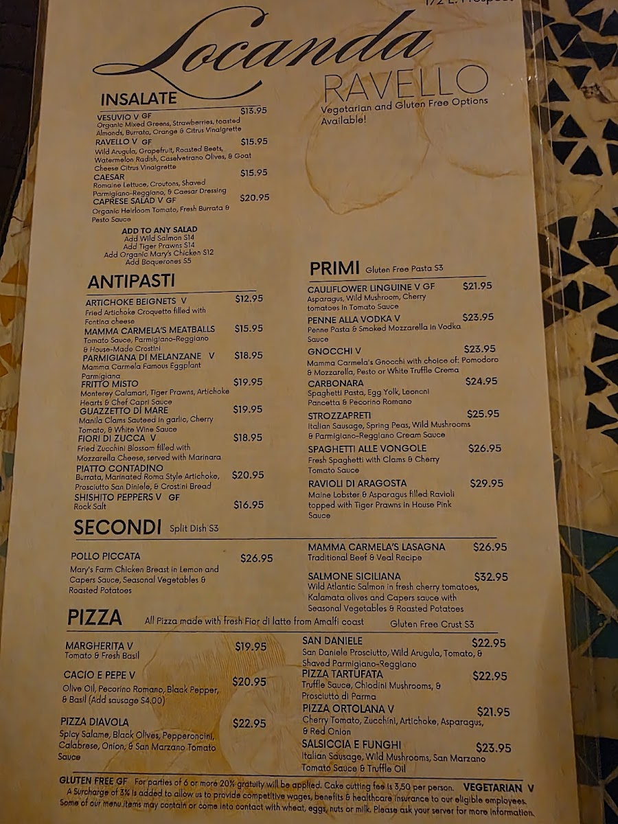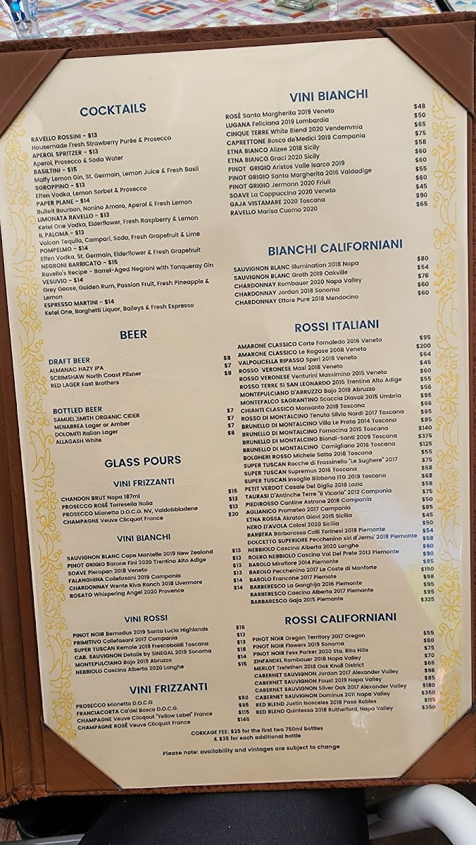 The menu at Locanda Ravello offers a thoughtfully curated selection of Italian classics and contemporary dishes, designed to complement its inviting and warm atmosphere. It’s a balance of hearty entrées, fresh seafood, and carefully crafted pizzas, paired with an array of wines and cocktails that enhance the dining experience without overwhelming it.